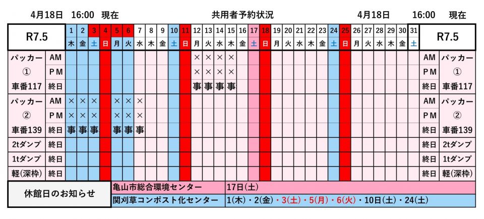 令和7年度 共用車貸出状況(会員専用)