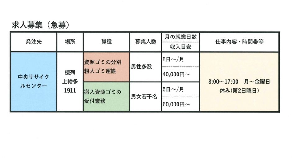 植木剪定・草刈りを就業できる方は、いらっしゃいませんか?