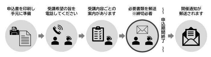 ※必要書類が締切までに間に合わなかった場合、受講できないことがあります。