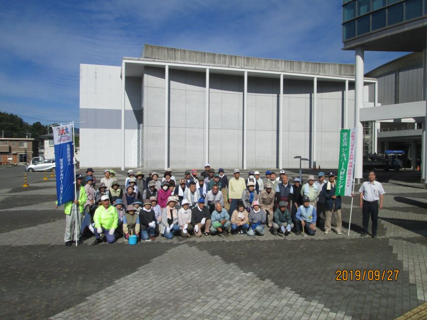 令和5年9月26日に、宮古市民総合体育館の正面玄関付近の清掃活動を、会員、事務局、総勢45名で行いました。