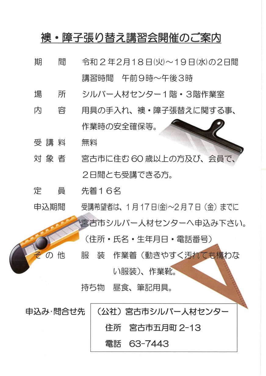 ※問い合わせ・申し込み電話番号 0193-63-7443 (公社)宮古市シルバー人材センター