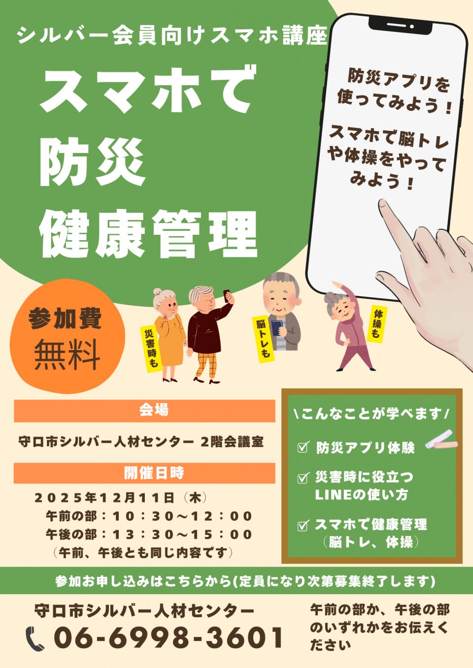 2025年10月14日 シルバー会員向けスマホ講座開催します!