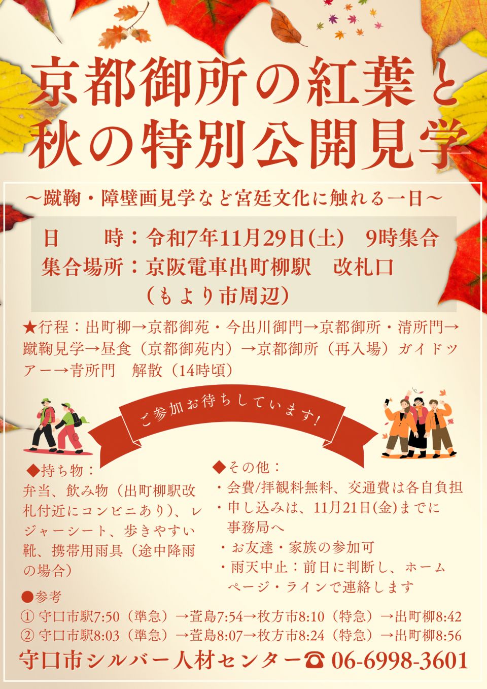 2025年10月29日 『京都御所の紅葉と秋の特別公開見学』のご案内!