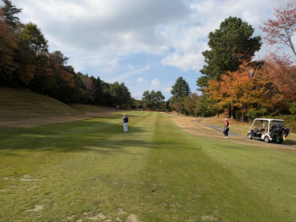 当日は秋晴れで紅葉も楽しめる中 やや参加人員が7名と少なかったですがきれいな空気を吸い会話を楽しみながら大変楽しくプレーしました(^^♪