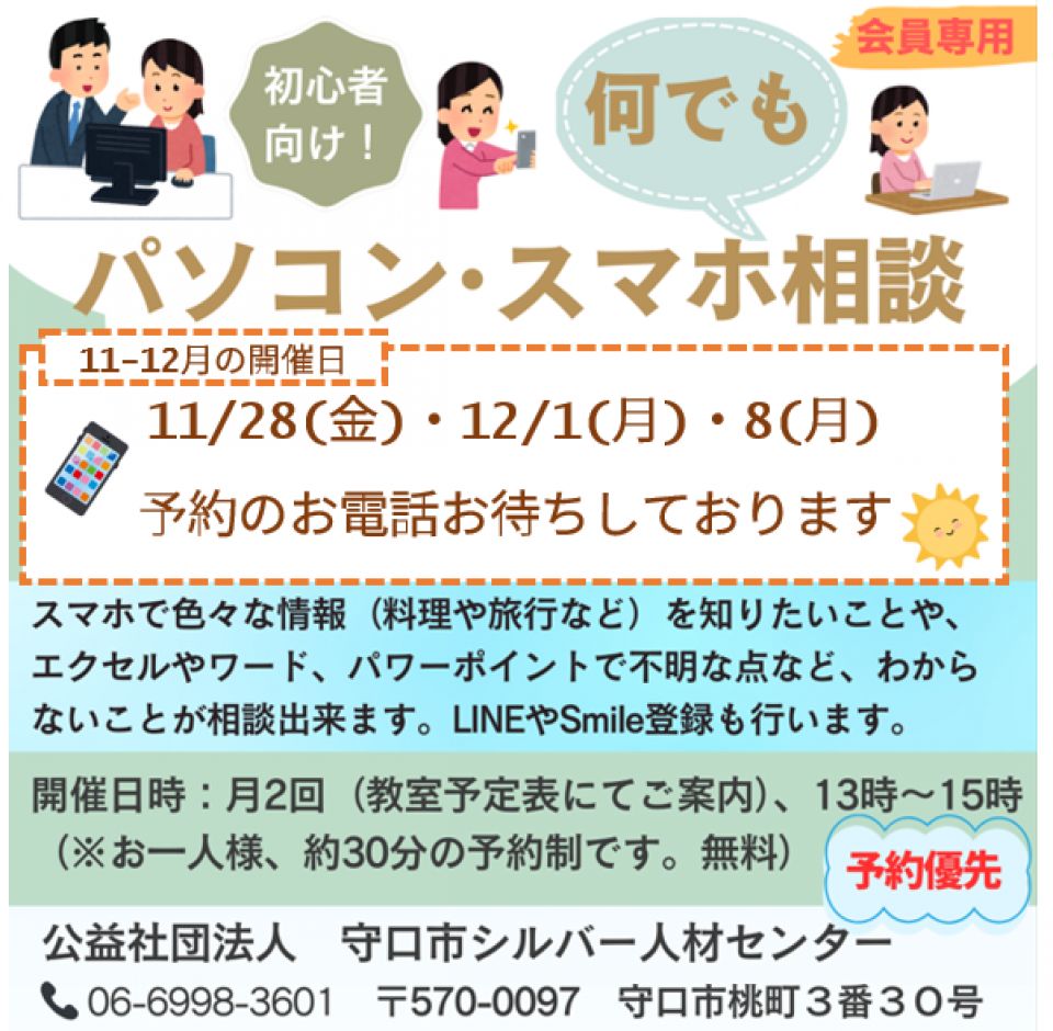 2025年11月20日 今年の『パソコン・スマホ相談』の日程です!