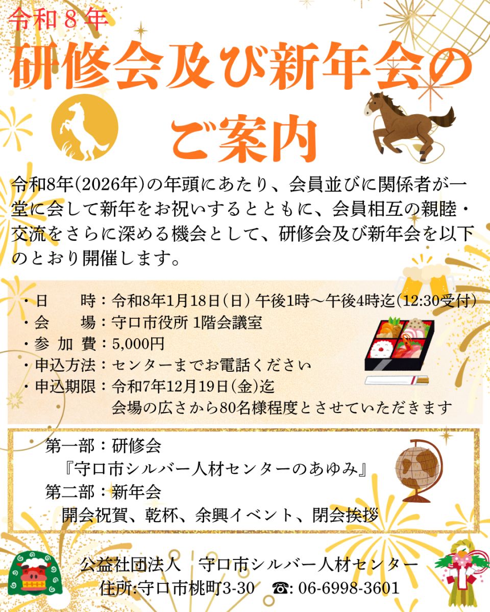 令和8年(2026年)の年頭にあたり、会員並びに関係者が一堂に会して新年をお祝いするとともに、会員相互の親睦・交流をさらに深める機会として、『研修会及び新年会』✨を開催します❗