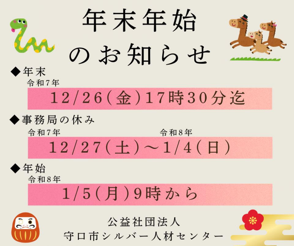 2025年12月1日 年末年始のお知らせ