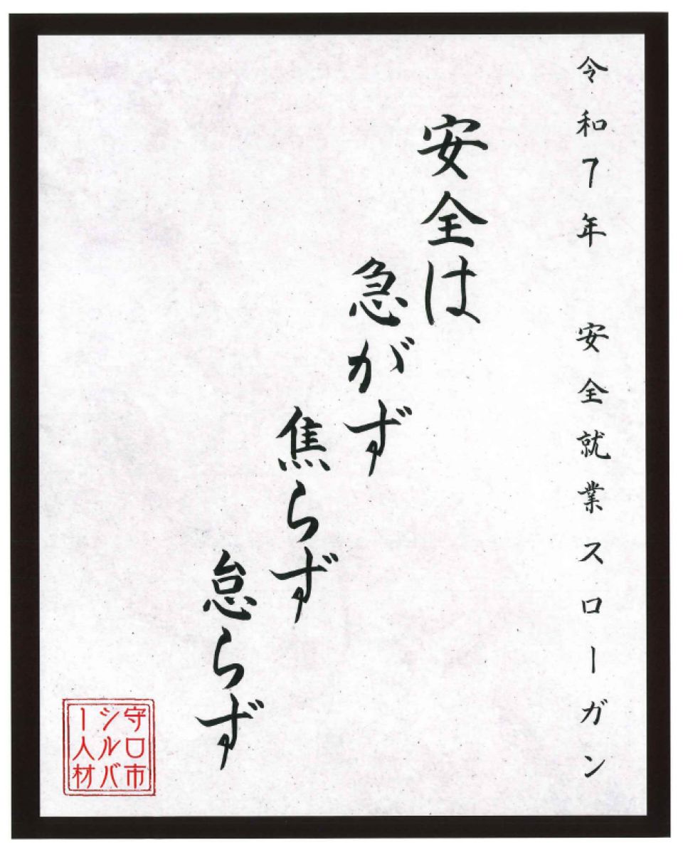 〇安全就業スローガン 『安全は 急がず 焦らず 怠らず』 に決まりました。