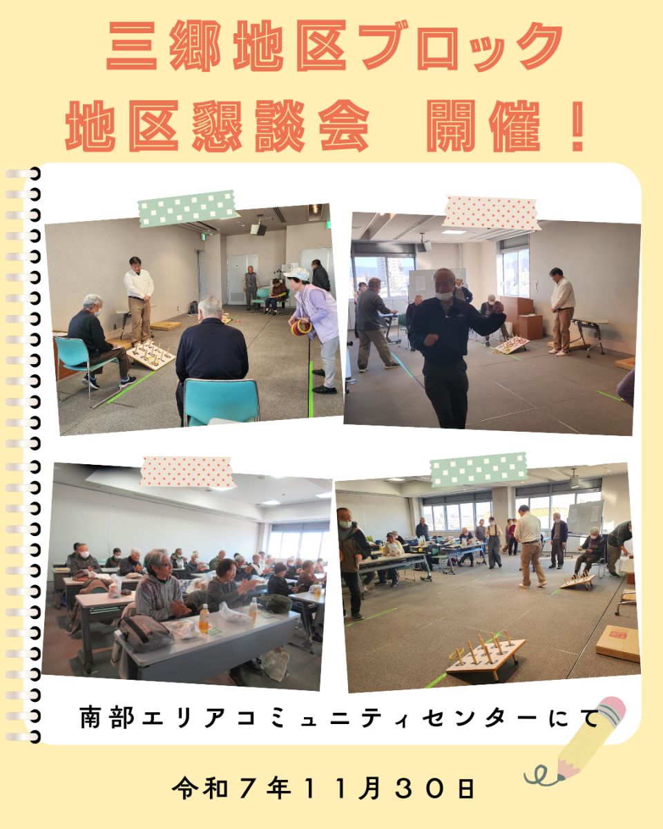 令和7年11月30日、南部エリアコミュニティセンターにて、三郷地区ブロックによる地区懇談会が自主的に開催されました。