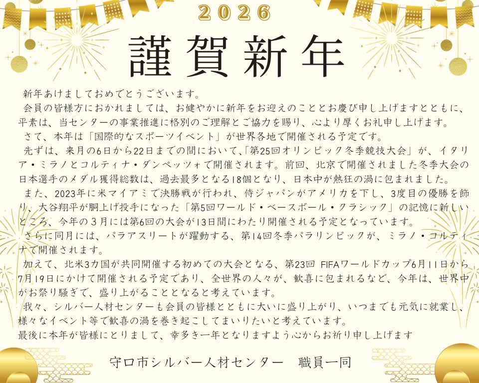 守口市シルバー人材センターは本日26日(金)で仕事納めになります。