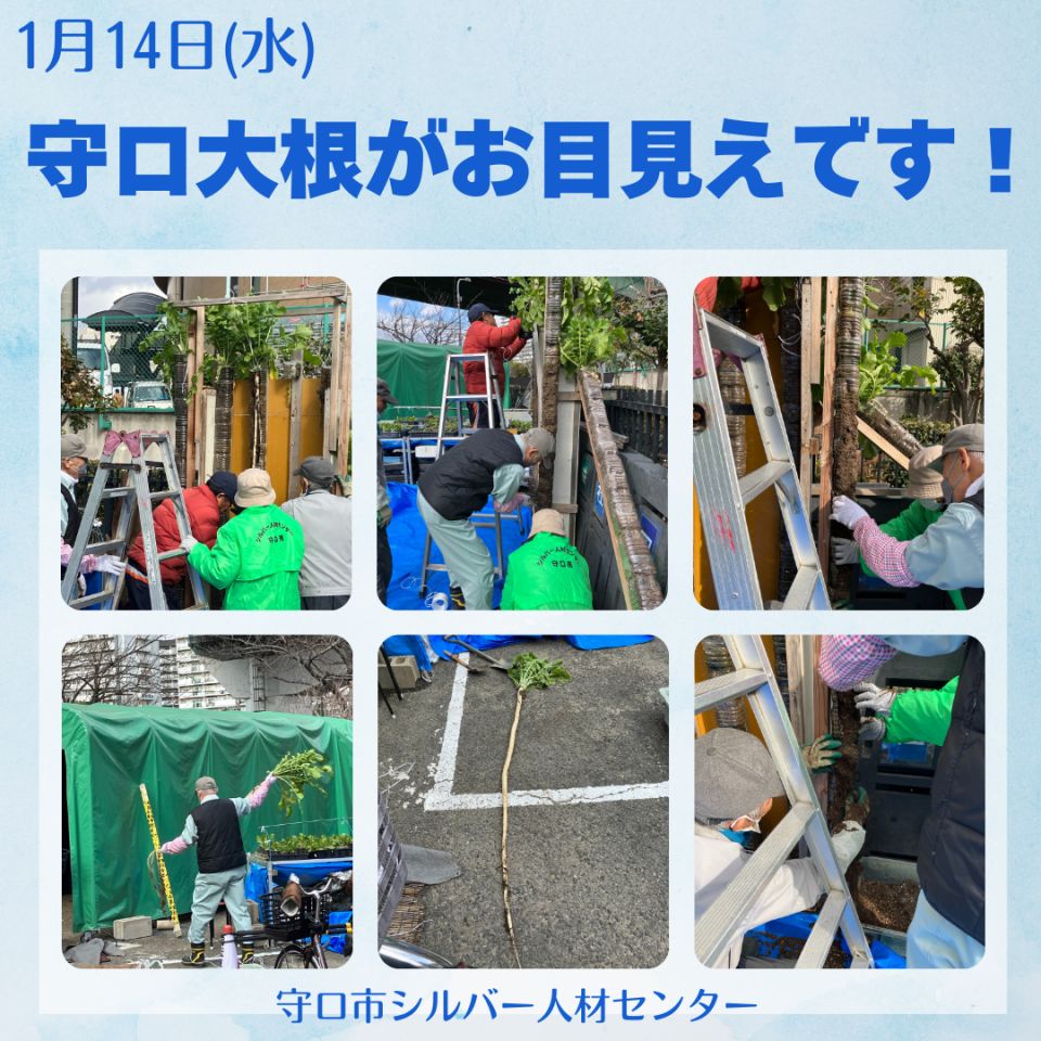 1月14日(水)に守口シルバーの駐車場内で育てていた守口大根がお目見えしました!