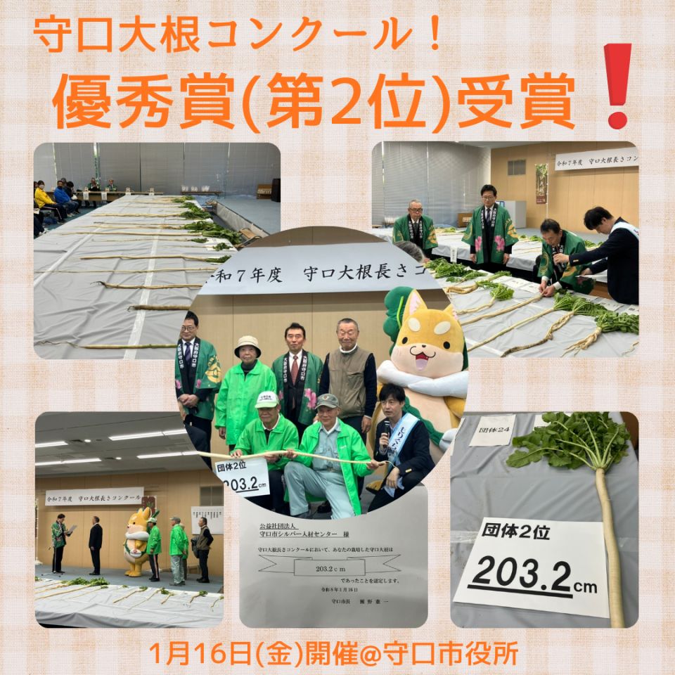 本日(1/16)に守口市役所で行われました『守口大根長さコンクール』団体の部で、守口市シルバー人材センターの守口大根が見事優秀賞を受賞しました(^^♪