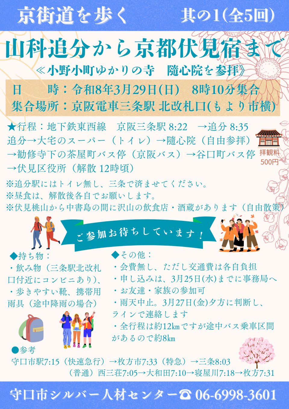 2026年3月2日 京街道ハイキングのご案内(山科追分から京都伏見宿まで)