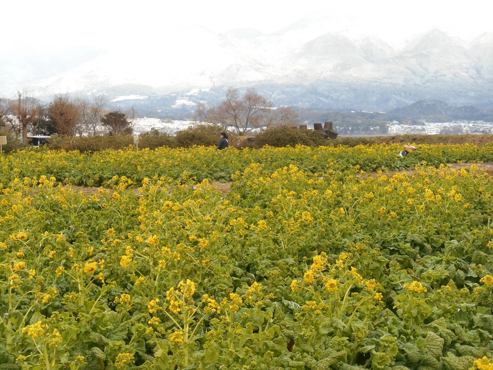 多方面よりたくさんの方が来場されています。菜の花はまだ2分咲き程です。