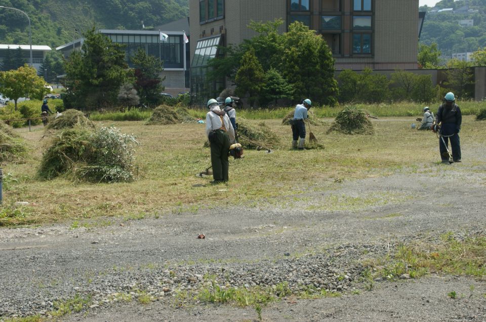 地域貢献活動 地域貢献活動 「ボランティア活動」を行いました♪ 7月10日(木)の午前9時からボランティア活動を行いました。 ♪ ご協力いただきました室蘭市様、室蘭観光協会様そして、参加頂いた会員の皆様ありがとうございました。 ♪ 港まつり会場となる入江地区において、約30名の参加者で草刈・清掃を行い、来場者の皆様が気持ち良く楽しめるように心をこめて、キレイにしました。