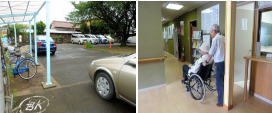 駐車場(左)と車椅子(右)