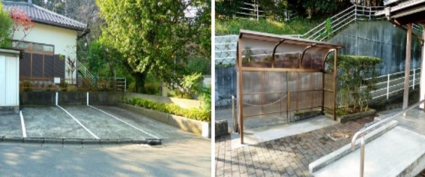 駐車場(左)と駐輪場(右)