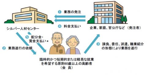 ● シルバー人材センターは、企業、家庭、官公庁などから業務を受注し、それらを、
