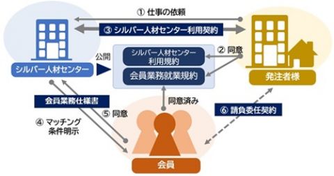 ● シルバー人材センターは、発注者と業務の完成を目的とした請負契約を締結し、その業務の完成を目的とした請負契約を会員と締結して、業務を実施します。