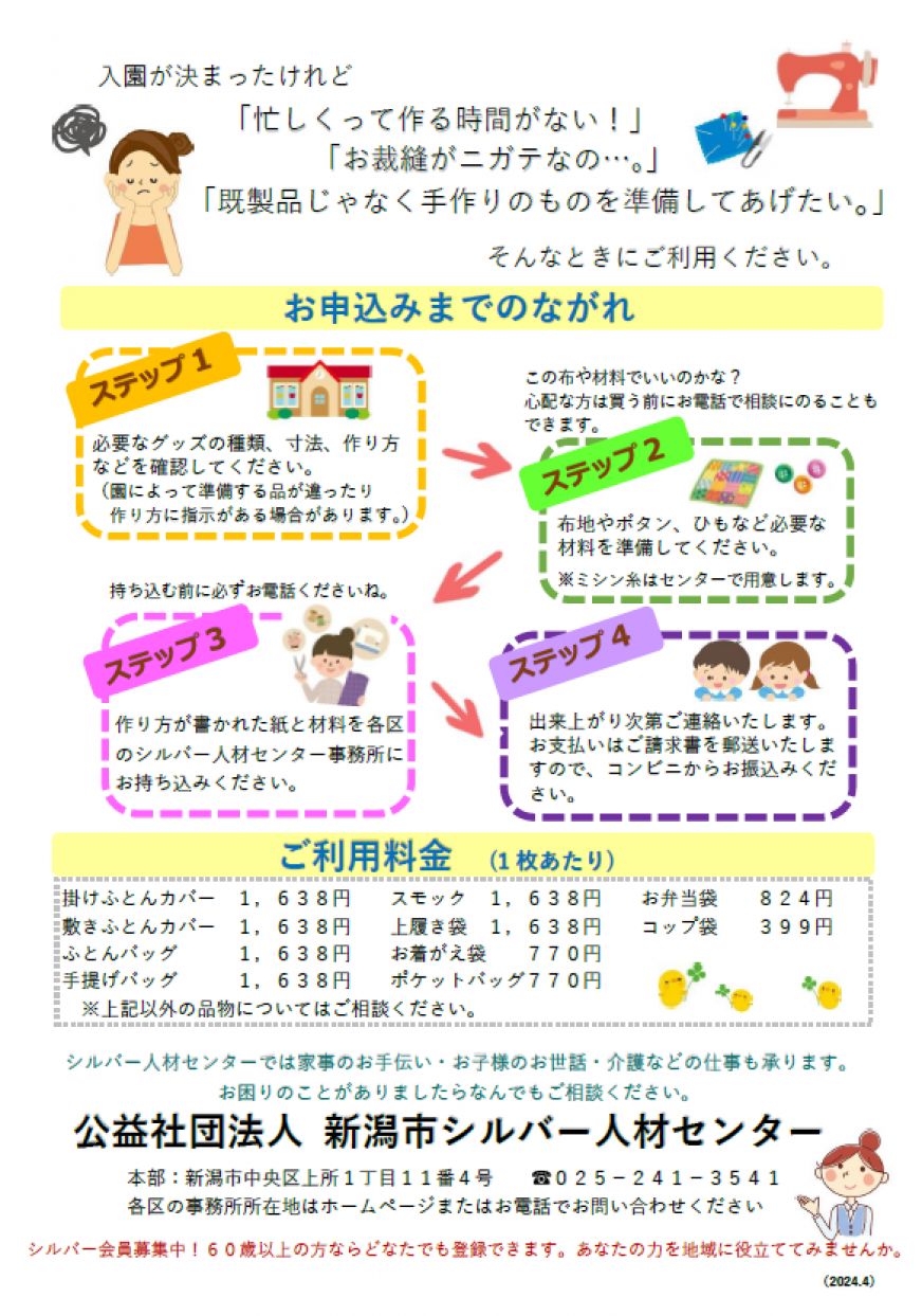お申込み:新潟市シルバー人材センター本部事務局