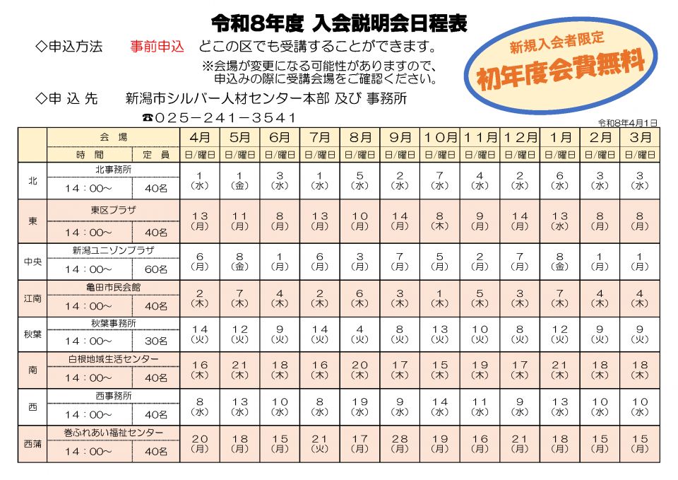 令和8年度 入会説明会開催日のお知らせ ※所要時間 120分程度