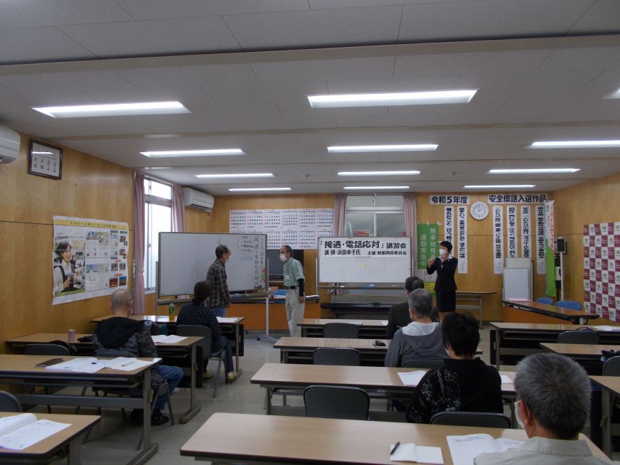 接遇マナーの5原則の「挨拶」、「表情」、「身だしなみ」、「態度」、「言葉づかい」を中心に学び、公共施設やサービス業務に従事される会員には大変有効な講習会となりました。