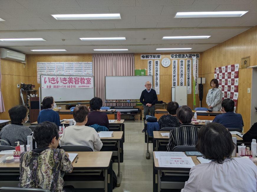 「化粧のちからで介護予防、健康寿命を延ばそう!」という内容で、皆様興味深くお話を聞き、実践されておりました。