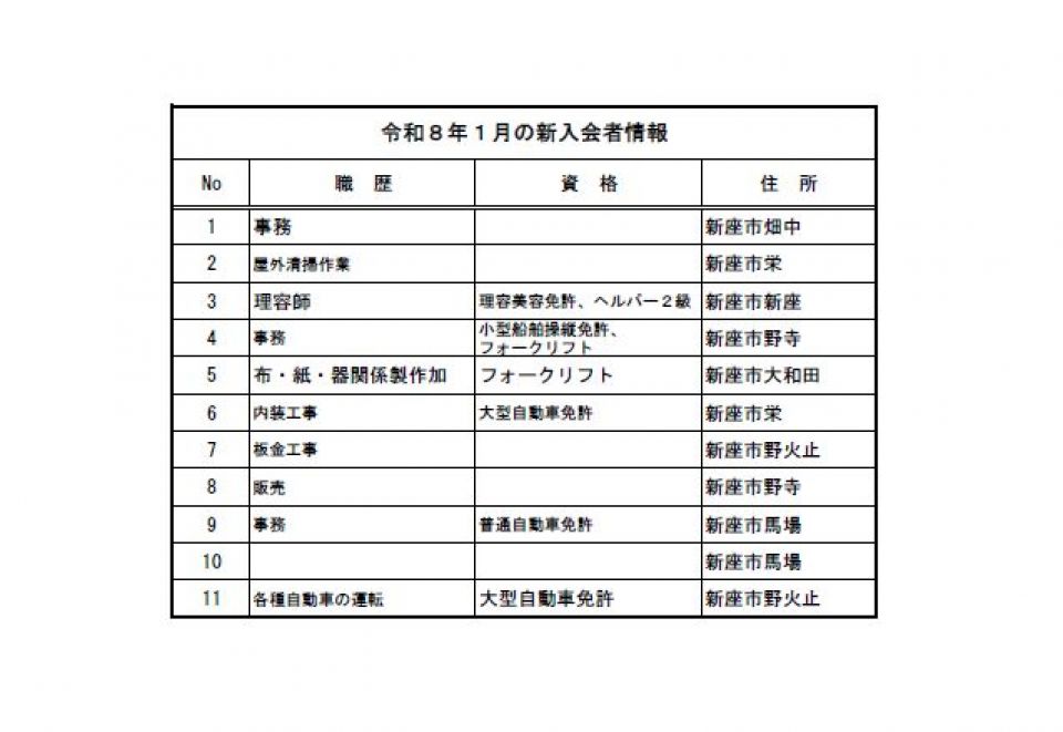 人材登録情報 人材登録情報 令和8年1月 新入会者情報 令和7年12月 新入会者情報 令和7年11月 新入会者情報 令和7年10月 新入会者情報 令和7年9月 新入会者情報 令和7年8月 新入会者情報 令和7年7月 新入会者情報 令和7年6月 新入会者情報 令和7年5月 新入会者情報 令和7年4月 新入会者情報 令和7年3月 新入会者情報 令和7年2月 新入会者情報 令和7年1月 新入会者情報