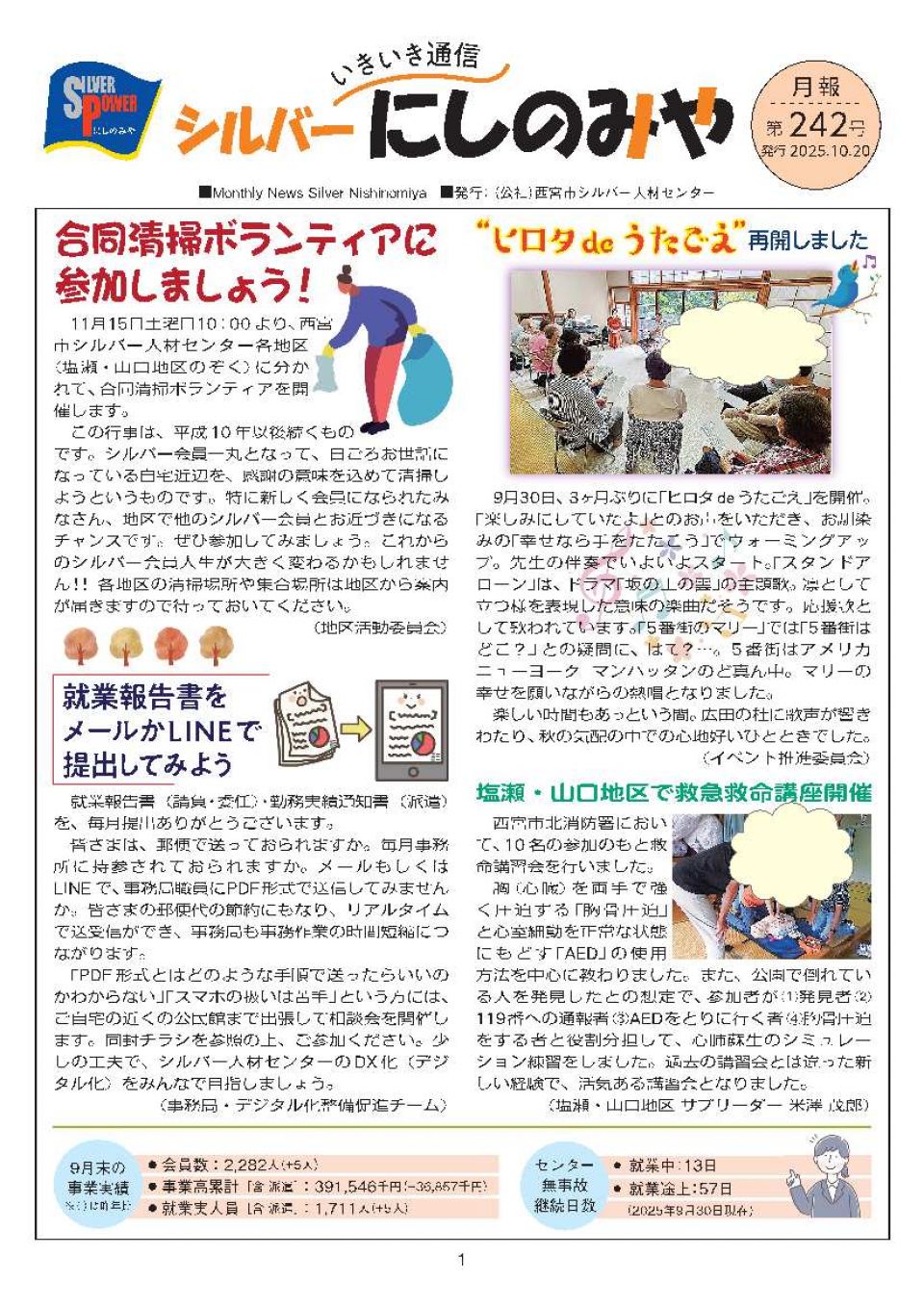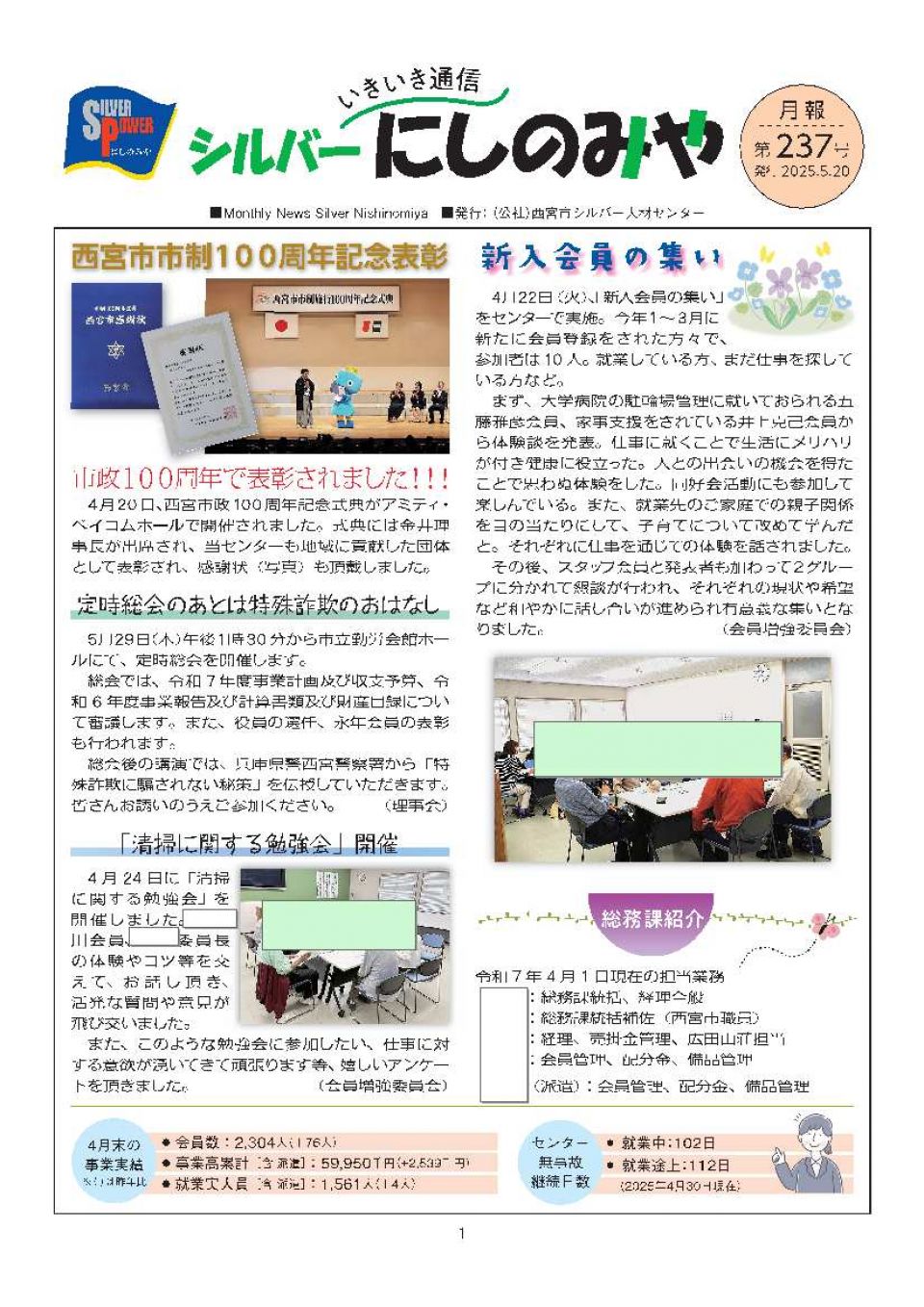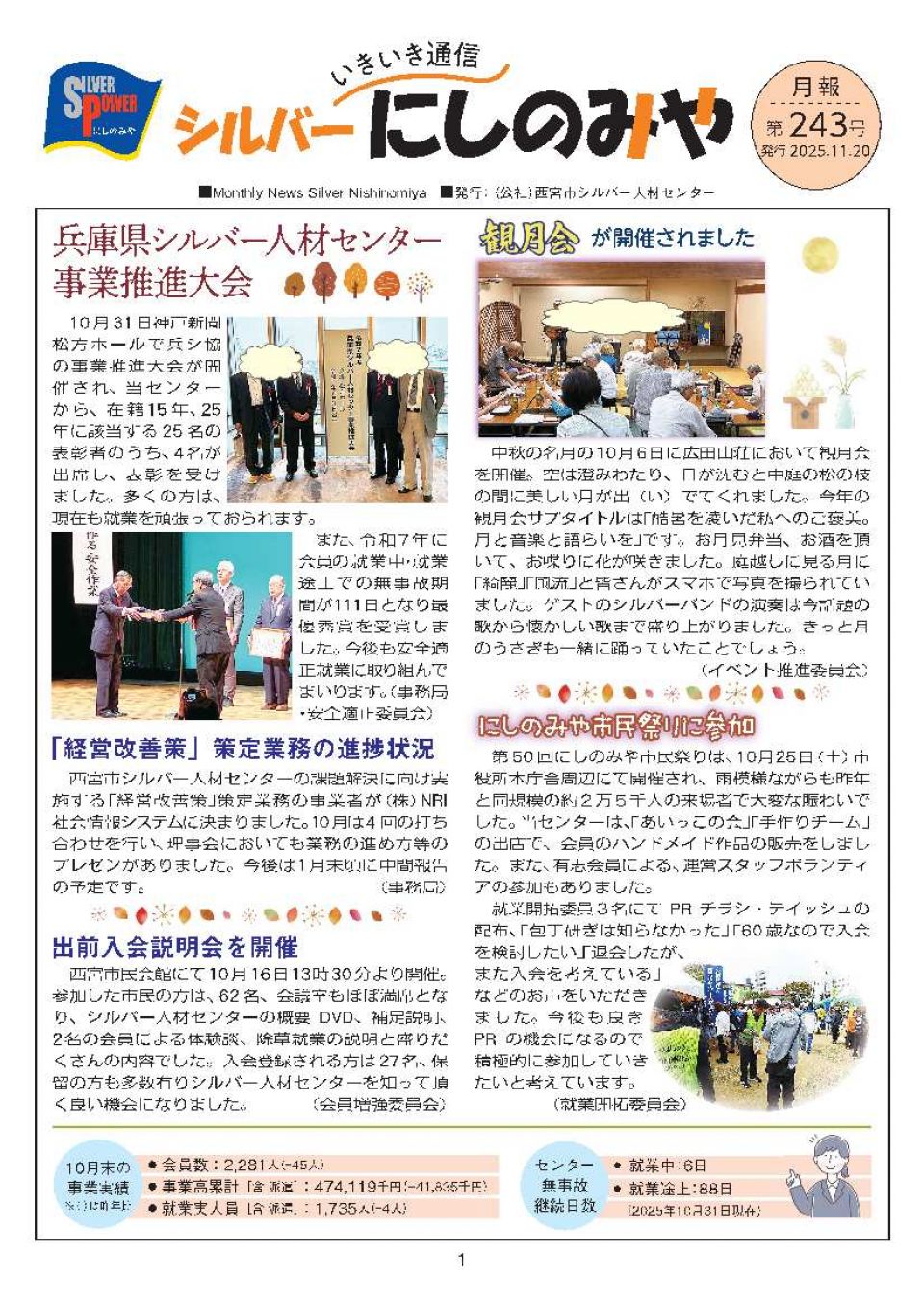 月報・会報 シルバーにしのみや(月報) いきいき通信シルバーにしのみや第243号 いきいき通信シルバーにしのみや第243号 いきいき通信シルバーにしのみや第242号 いきいき通信シルバーにしのみや第242号 いきいき通信シルバーにしのみや第238号 いきいき通信シルバーにしのみや第238号 いきいき通信シルバーにしのみや第237号 いきいき通信シルバーにしのみや第237号発行しました いきいき通信シルバーにしのみや第237号