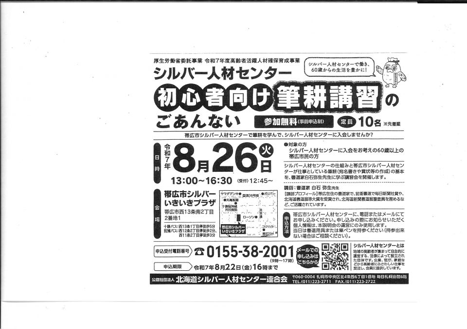講習会案内 募集中の講習会情報 【会員限定】筆耕講習会のご案内 今年度終了した講習会 剪定講習会 令和7年5月14日 開催 剪定の一般的な基礎と実技を学びました 草刈講習会 (座学) 令和7年5月19日 開催 (実技) 令和7年5月20日 開催 安全対策および機械の取扱い、草刈の実技を学びました 草取り講習会 令和7年5月22日 開催 就業要領と安全就業、草取りの実技を学びました
