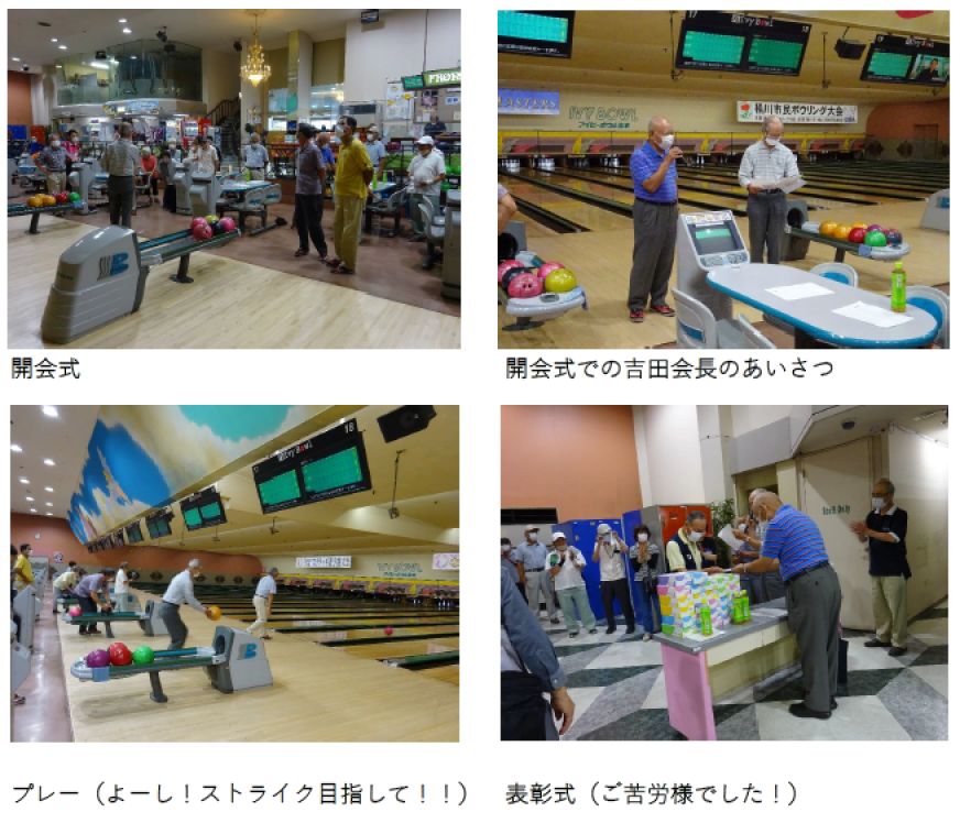 日頃からボウリングを楽しんでいる人と、久しぶりに大会に臨む人では雲泥の差が出たようです。全員が楽しいそうにボールを投げている姿や、思った所にボールがいかず“スペア”がとれなく、残念そうなポーズをしている姿あり、あっという間に時間が過ぎ、怪我もなく終えることができありがとうございました。