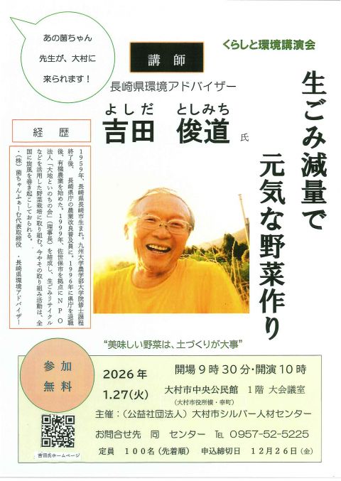菌ちゃん先生こと吉田俊道氏が大村に来られます!