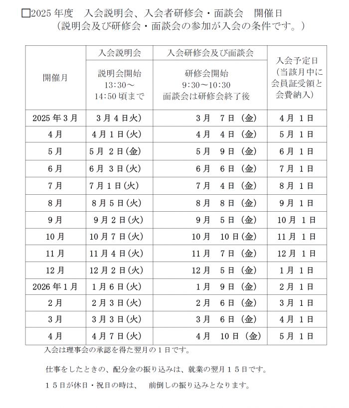 シルバーの仕事をしてみたい方は、入会説明会にご参加して下さい。