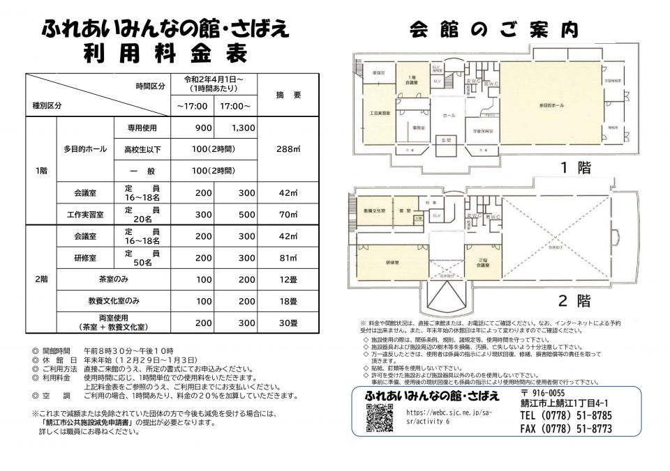 ふれあいみんなの館・さばえ 施設のご案内