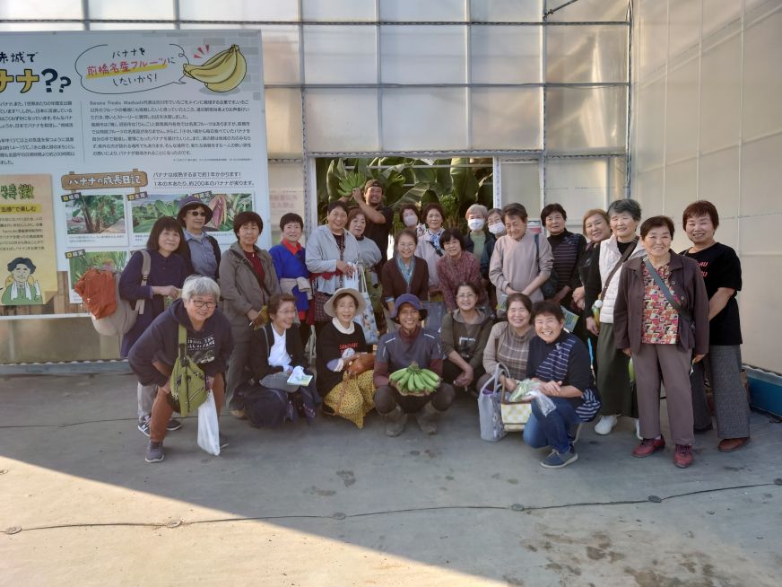 ふるさと巡りを開催しました。今回は、“隣の”ふるさと巡りということで群馬県のカルピス工場と道の駅まえばし赤城に行きました。カルピス工場では、カルピス誕生の秘話から製造ラインまで見ることができ、充実した工場見学になりました。まえばし赤城では、おいしい昼食やお買い物を楽しみ、貴重な国産バナナの収穫体験を行いました。とても貴重な体験をすることができました。参加された方々から、次も開催してほしいとの声をいただきました。