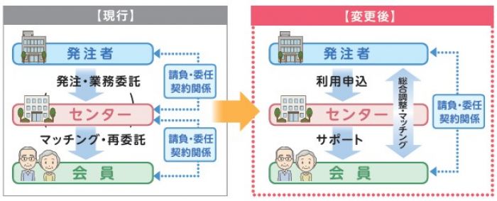 これまでの契約方式で、シルバー人材センターは、発注者から仕事の依頼を受け会員に再依頼する形を取っています。