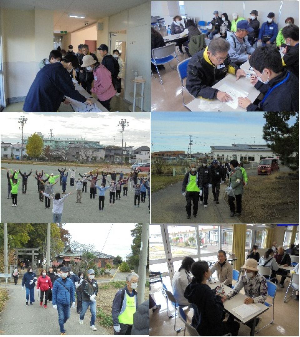 学生は、4年生の他にボランティアとして2年生も加わり、19名の参加となり、シルバー人材センター会員も34名が参加しました。そこに大学の教職員、シルバー人材センターの役員を加え、約60名による幸手プロキングを開催できました。