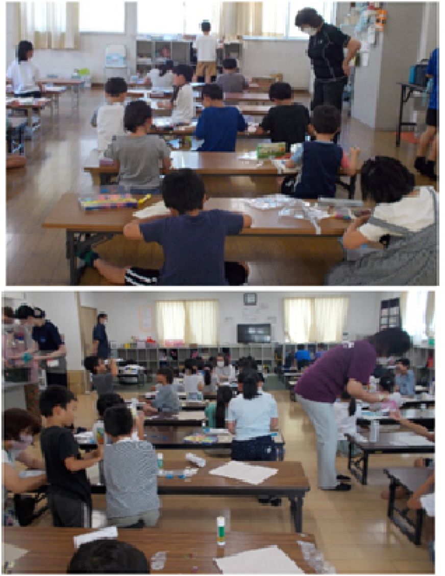 学童の指導員から「こんなに集中しているのは久しぶりです。」と話してもらい、子供たちは退屈することなく、とても満足してくれたように思います。この暑さで、外遊びが難しい今、家にあるもので簡単に作れる工作ゲームで体力も発散できました。