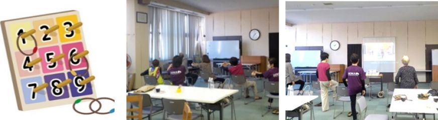 その後、チーム対抗戦で、ボードにある9つの全ての棒にいかに早く輪が入るかを競い合いました。周りの会員さんも、応援に力が入り、とても盛り上がりました。