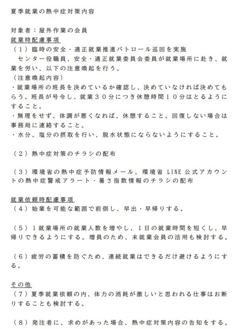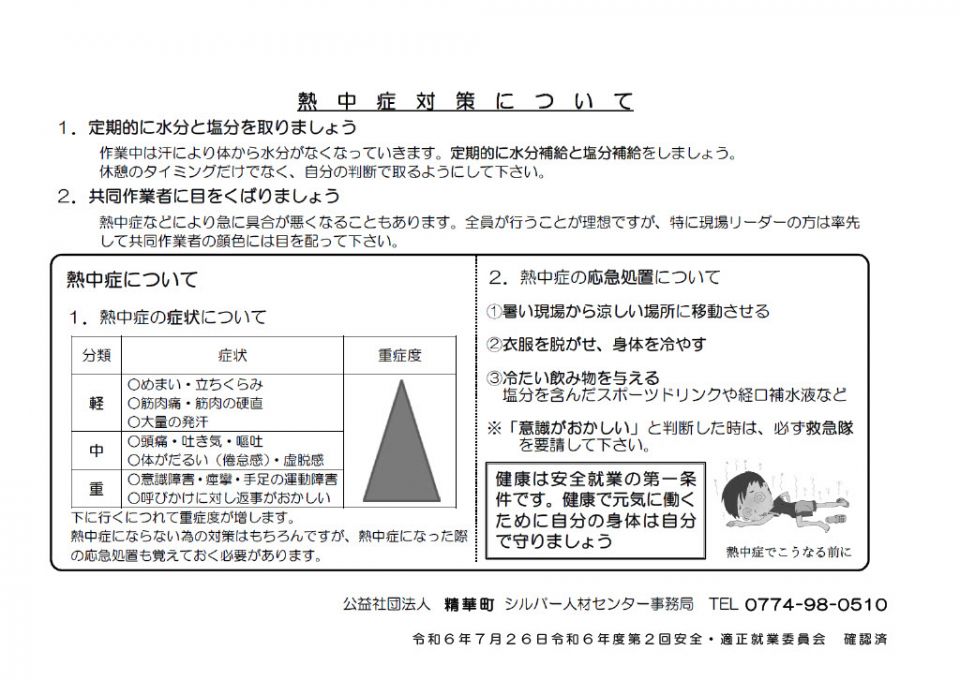 1.熱中症対策チラシ 熱中症予防、応急処置方法をまとめました。(出典 鹿児島市シルバー人材センター)⇒