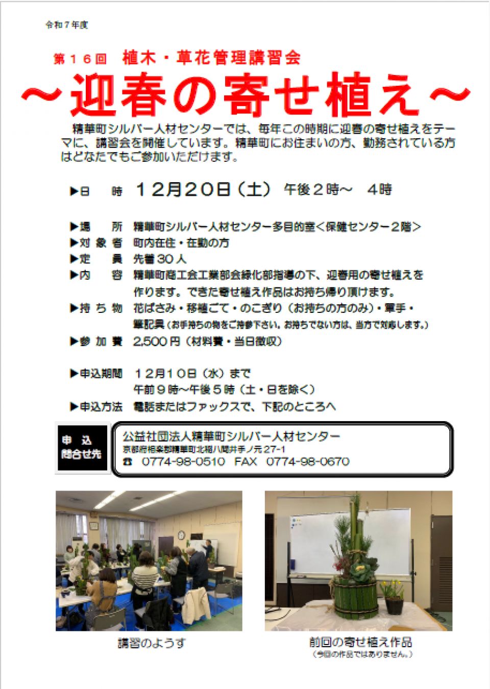 今年度も植木・草花管理講習会~迎春の寄せ植え~を、 12月20日(土)午後2時から開催します。 申込受付中!!
