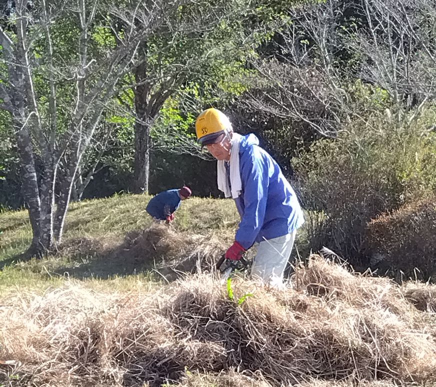 国道沿いの斜面には背丈の高い枯れ草が覆い、鳥獣害防止ネットにはつる草が絡まるなど、日頃の管理が行き届いてない状況でしたが、参加者の皆さんのご尽力により、見違えるほどきれいになりました。おつかれさまでした。