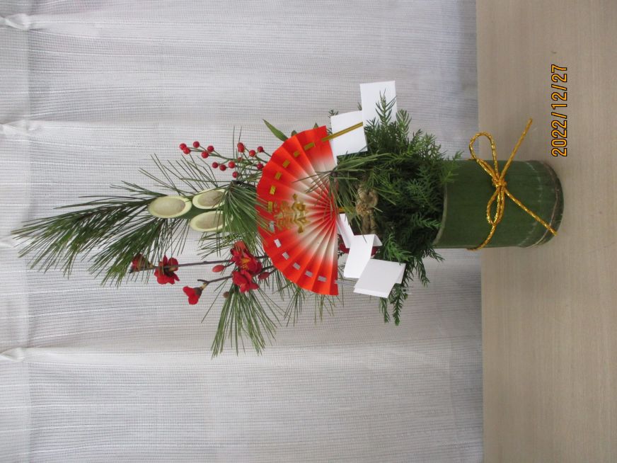 ・令和7年度門松です。写真の見本は令和7年11月塩尻市文化祭のシルバーセンターブースで展示したものです。