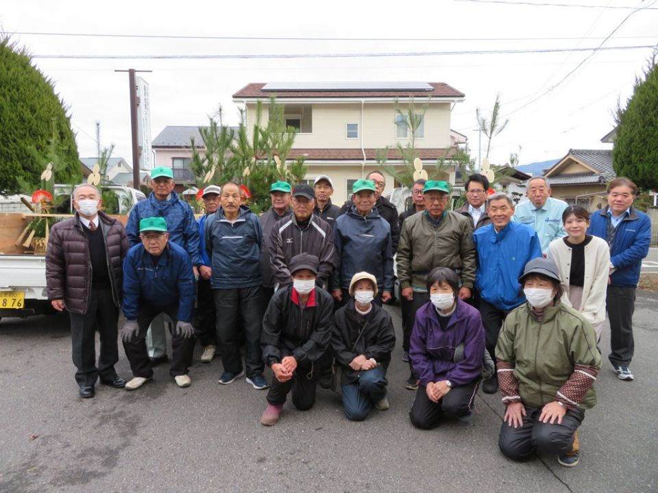 平成25年度より毎年隣の大門保育園の園児と松飾り班の会員と一緒に門松作りをしています。令和7年も12月に園児たちと一緒に仕上げました。