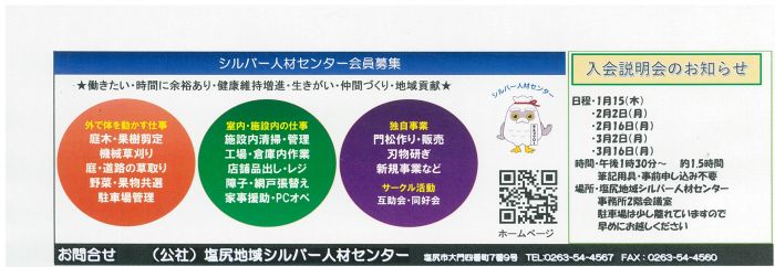 会員募集案内をPDFで見えやすくしました。就業するお仕事、独自事業のお仕事、サークル活動などをご案内。