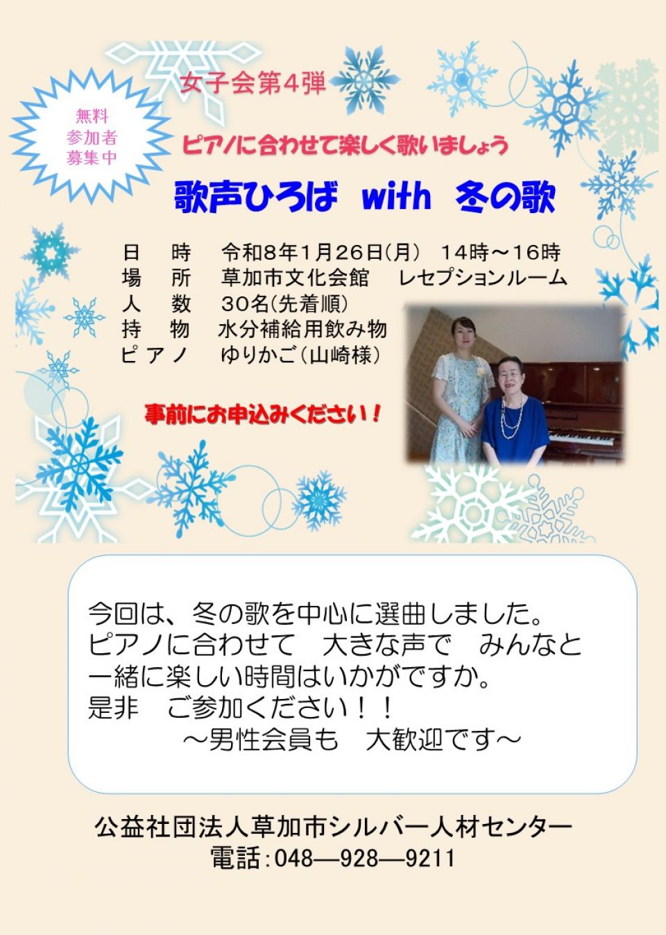 女子会 第4弾 歌声ひろば with 冬の歌 参加者募集!!