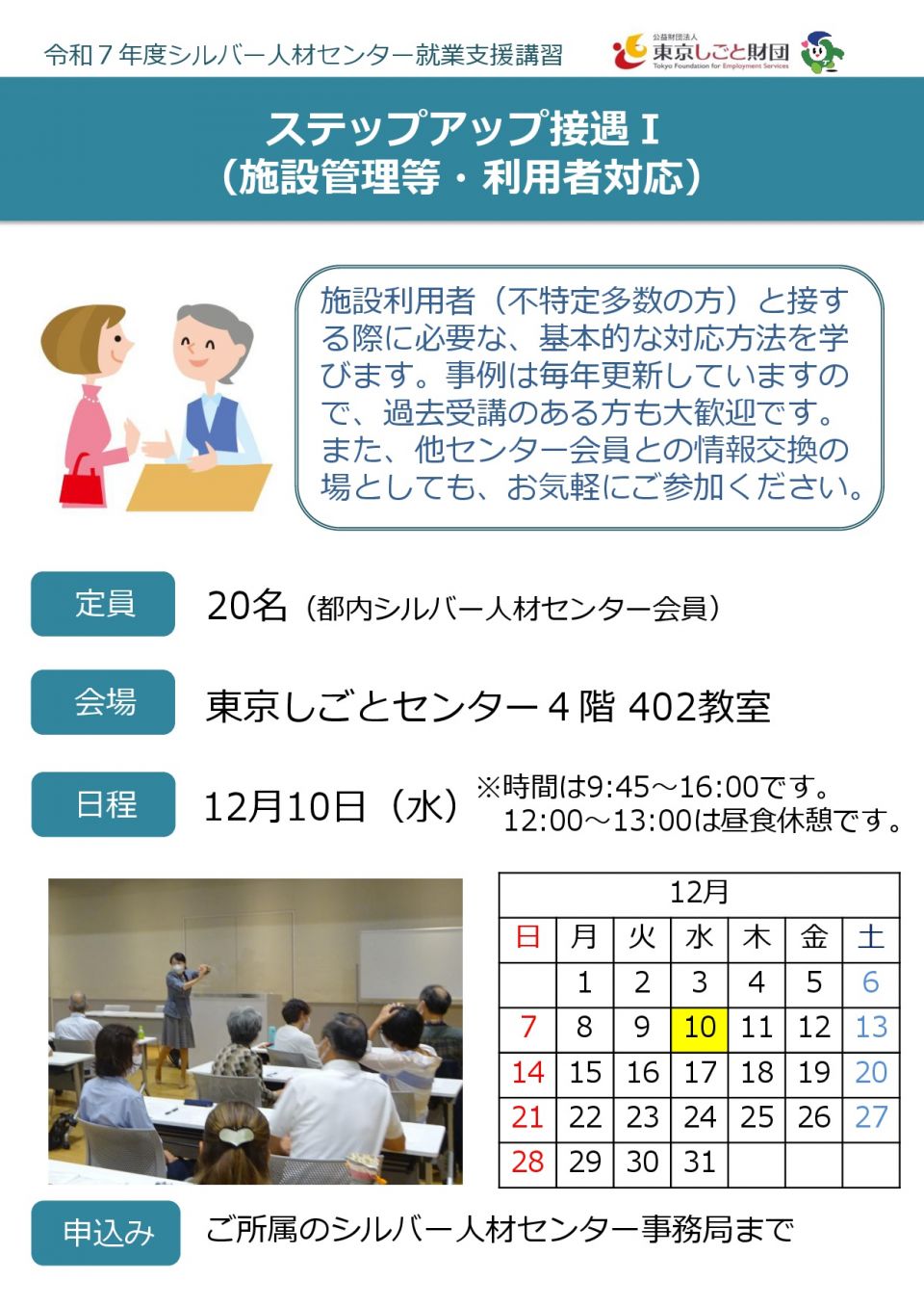 東京しごと財団主催 「ステップアップ接遇Ⅰ(施設管理等・利用者対応)」 参加者募集!