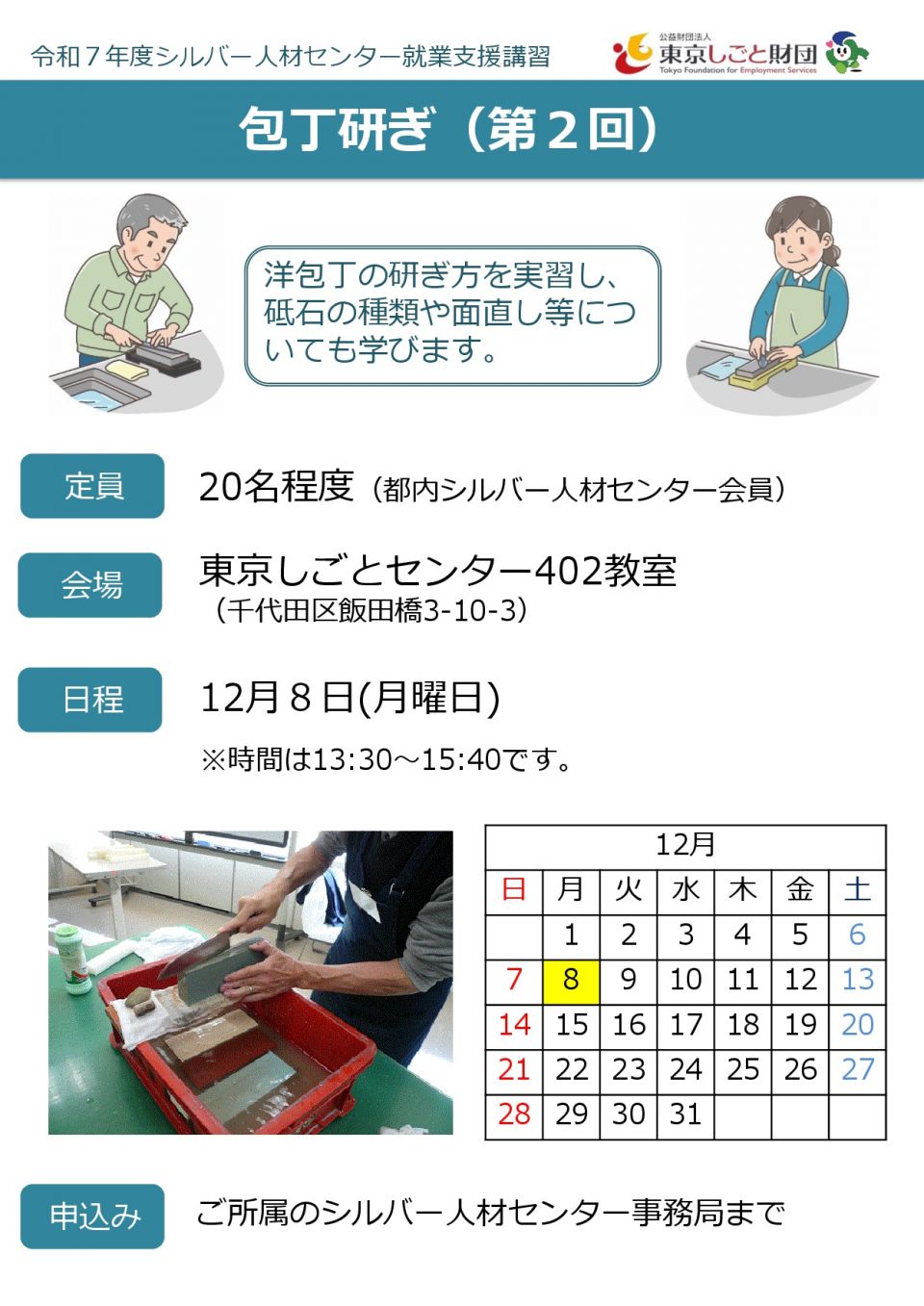 東京しごと財団主催 「包丁研ぎ(第2回)」 参加者募集!