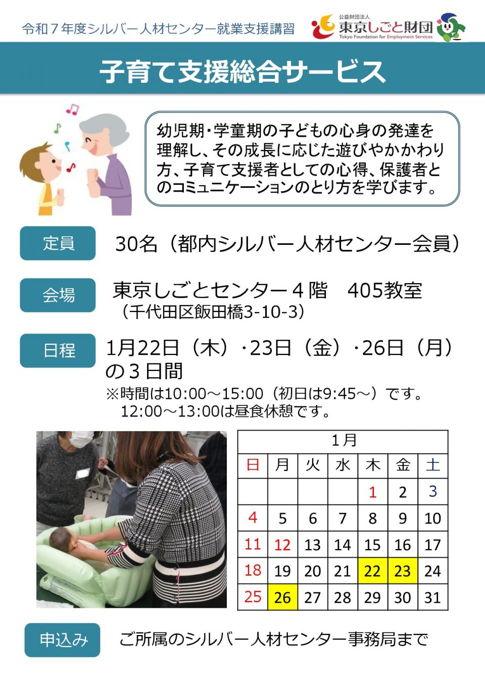 東京しごと財団主催 「子育て支援総合サービス」研修 参加者募集!
