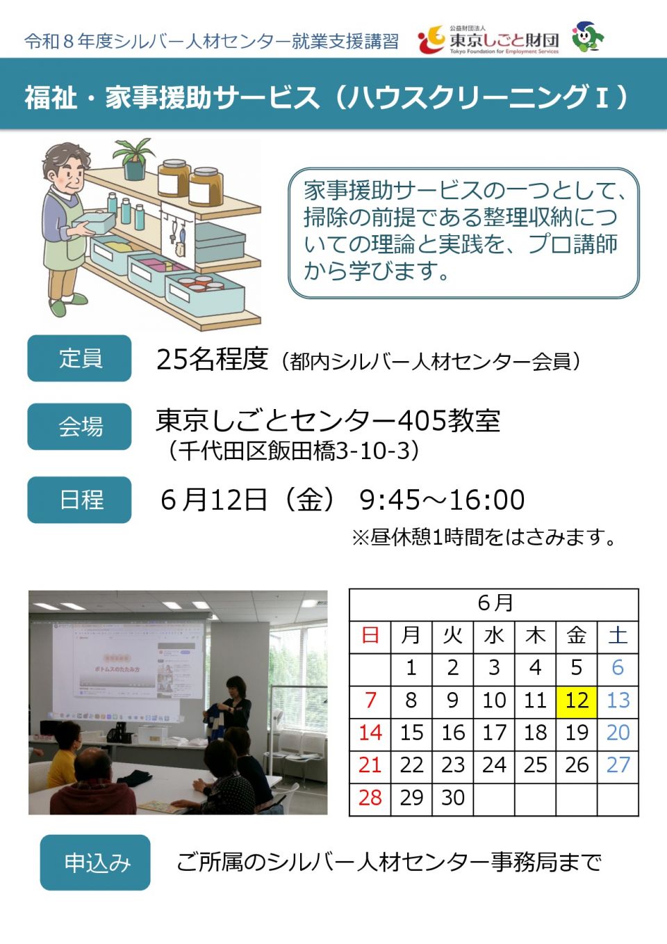 東京しごと財団主催「福祉・家事援助サービス(ハウスクリーニングⅢ)(第2回)参加者募集!